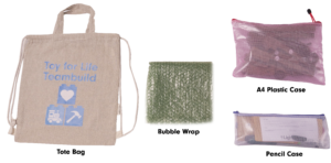 You will receive everything you need to complete this team-building challenge in the Toy for Life tote bag.
