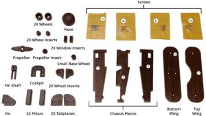 - 1x A4 plastic case with all the wooden components required to build your plane