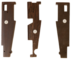 Identify the window inserts and slot them into the rectangular insert with the zigzag pattern facing outwards on chassis pieces 1 and 3.