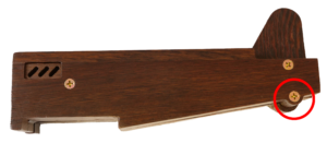 Flip your plane again, this time onto its side, with the countersunk hole facing towards you. Then, secure the small base wheel using the last remaining ‘L’ screw through chassis 1 and 3. Only screw until snug.